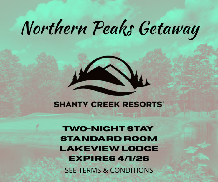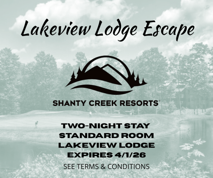 Certificate for (2) Nights’ Lodging – Valid at the Lakeview Hotel & Conference Center at Shanty Creek Resort in Bellaire, MI. Subject to availability and blackout dates including Dec 26 – Jan 1, MLK weekend and President’s Weekend.