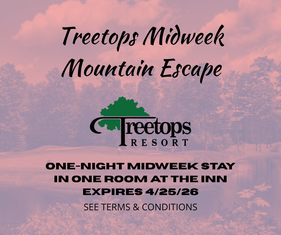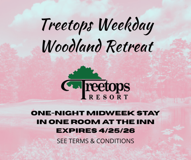 Certificate for (1) Night’s Lodging – Valid at THE INN at Treetops Resort in Gaylord, MI. Subject to availability and blackout dates.