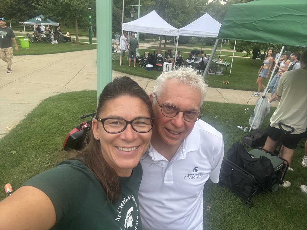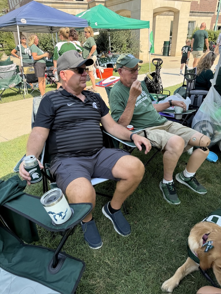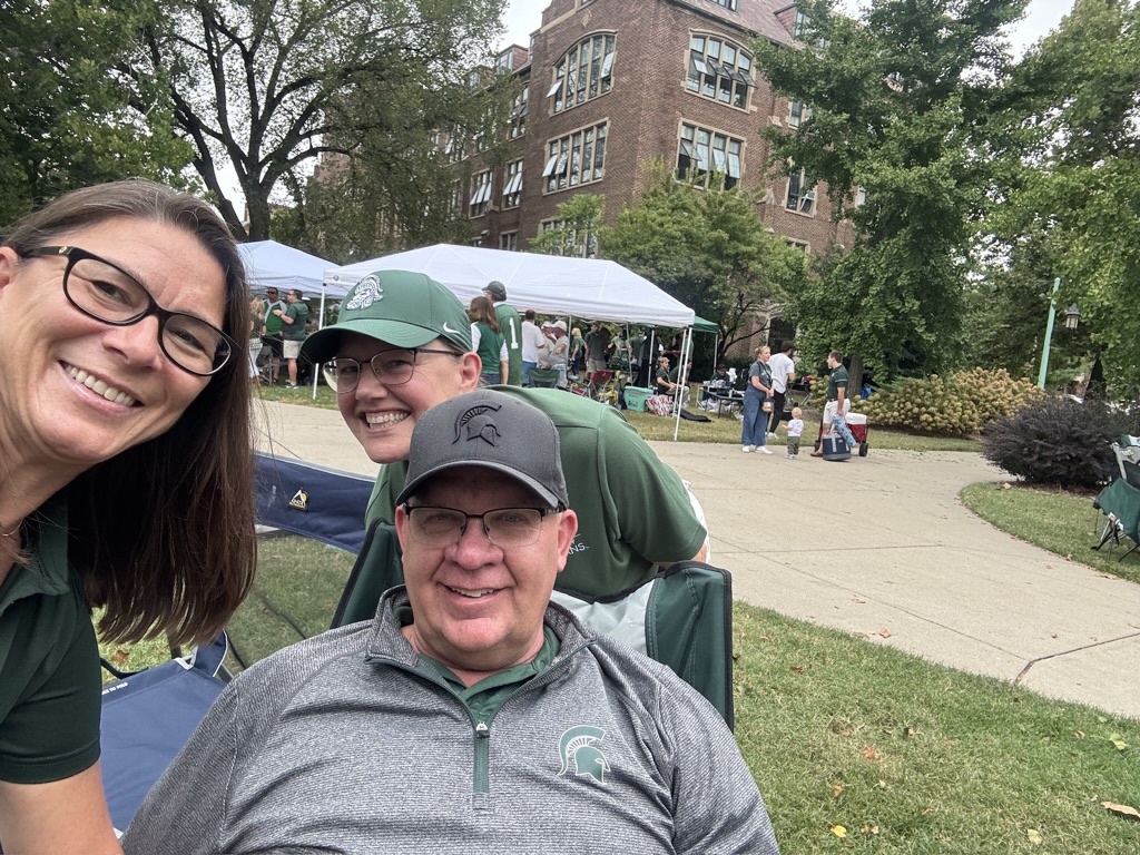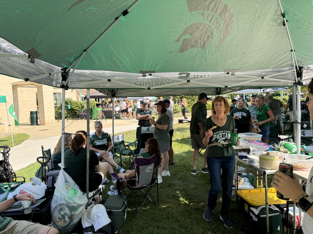 Many of our members tailgate near the Grand River Avenue Ramp on Circle Drive each home football game. All are welcome!